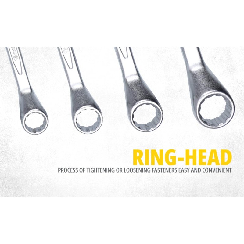 The bi-hex (12-point) ring design provides a better grip and reduces the risk of rounding off fasteners.