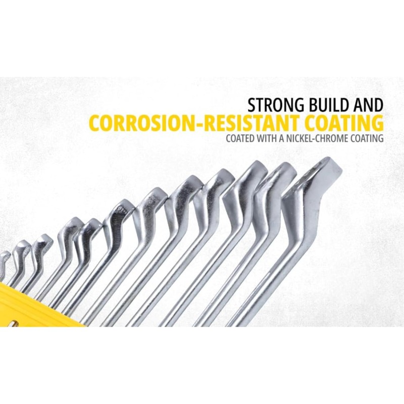 Each spanner is made from premium Chrome Vanadium Steel (Cr-V) and is drop-forged and heat-treated for superior strength and performance.