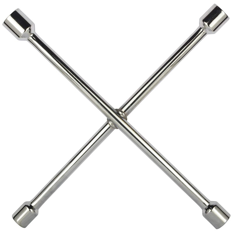 Each arm of the cross wrench is fitted with a different socket size, covering the most commonly used wheel nut dimensions.