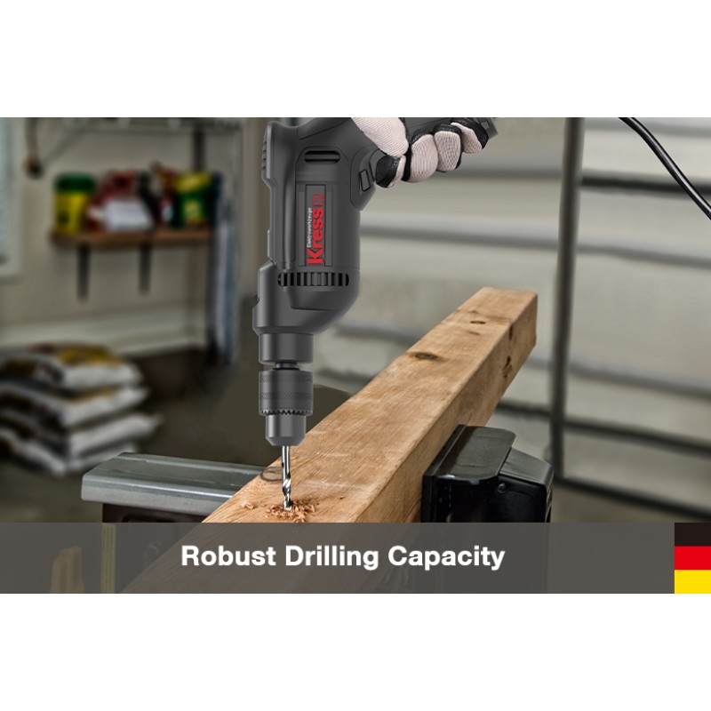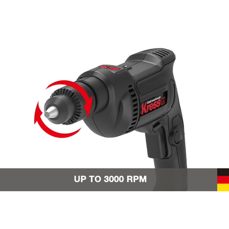 The Kress KU120 650W Rotary Drill is a versatile, heavy-duty tool designed for precision drilling in metal, wood, and aluminum. Powered by a 650W high-torque motor with a variable speed range of 0–3000 RPM, it ensures smooth performance for professional and DIY users alike.