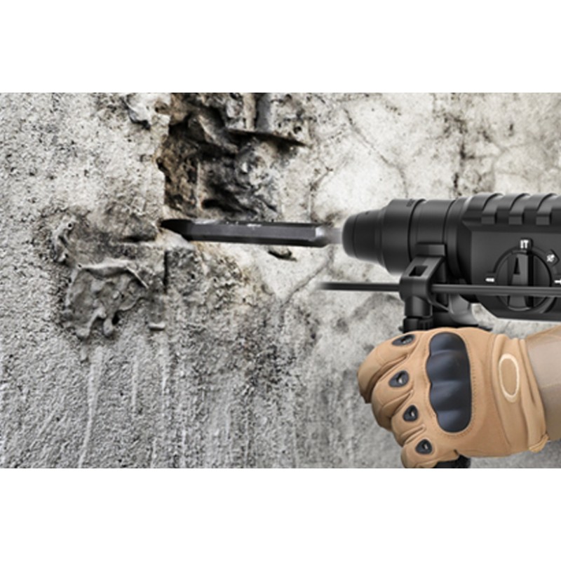 With its 4 functions in 1 — drilling, hammer drilling, chiseling, and rotation stop — this rotary hammer is ideal for concrete, steel, and wood applications. The SDS-Plus chuck system ensures quick bit changes and reliable bit retention, while the clutch tripping technology enhances user safety.