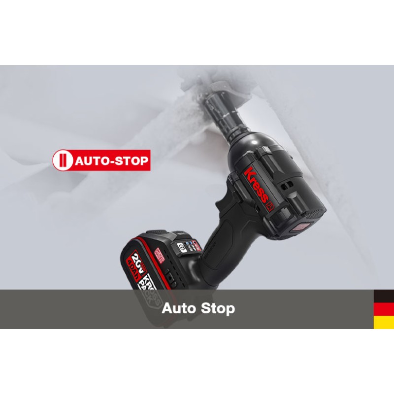 It also features variable speed control, auto-stop reverse protection, and an ergonomic design that balances comfort and control — all backed by Kress’s German engineering reliability.