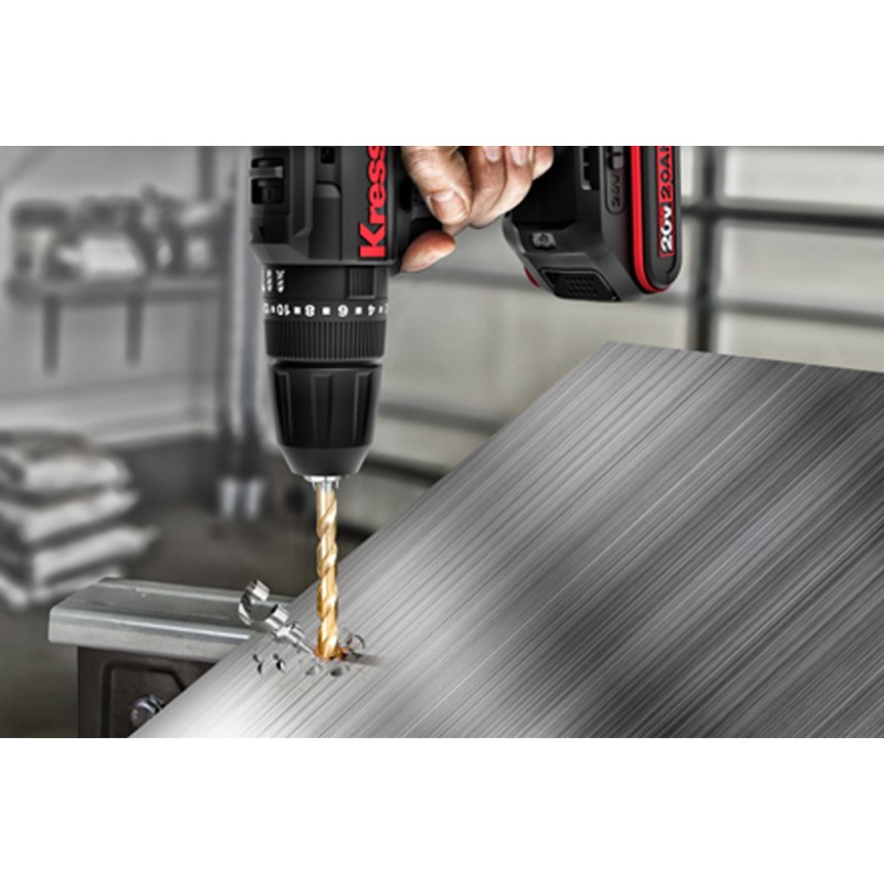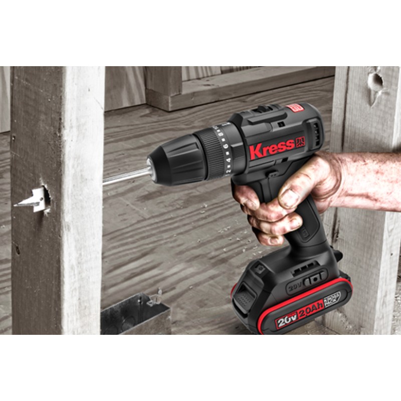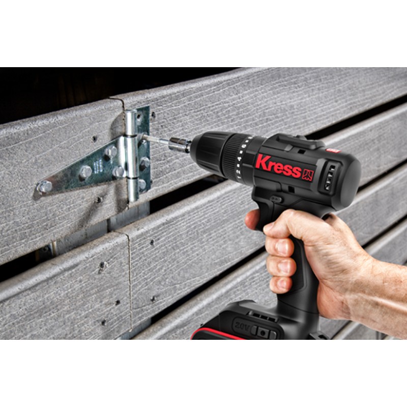 The Kress KU365.1 20V Brushless Hammer Drill combines the precision of a drill driver with the raw power of a hammering action — perfect for drilling through wood, metal, and masonry. Powered by a high-efficiency 20V brushless motor, it delivers 50Nm of torque, 28,000 BPM impact rate, and dual-speed control (0–450 / 1800RPM) for versatile performance.