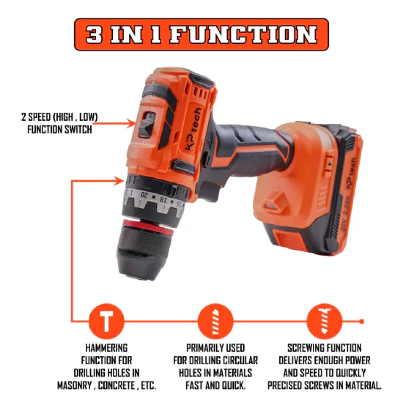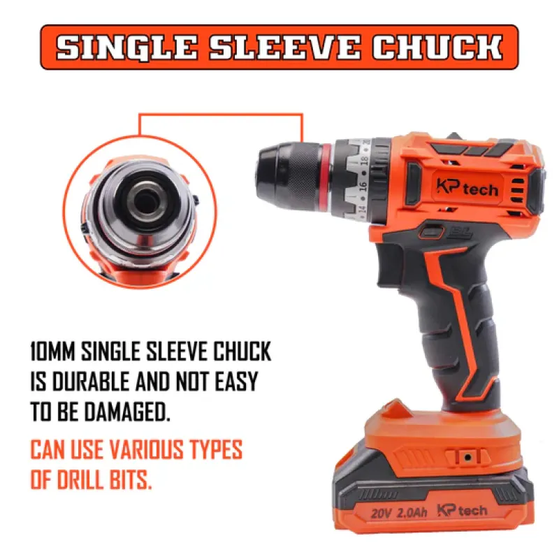 The KP Tech BK–CLIDK4502 Cordless Impact Drill Kit redefines versatility and performance in one compact, portable package. Powered by a 20V lithium-ion system, this professional-grade drill delivers up to 45Nm torque and impact drilling capability — making it ideal for work on wood, steel, and even concrete.