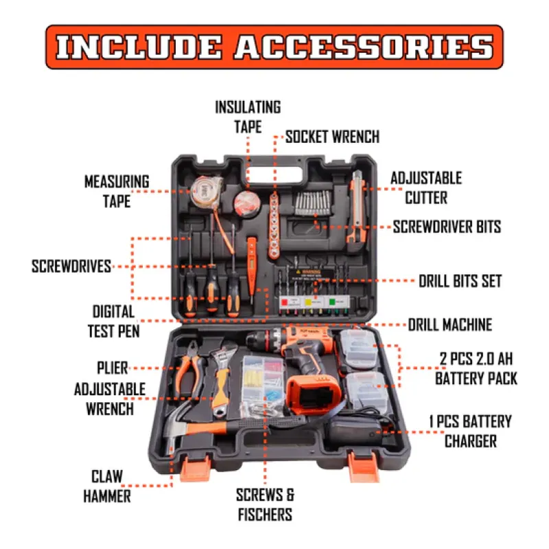 - Product Code: CORDLESS IMPACT DRILL KIT with 47pcs Accessories
