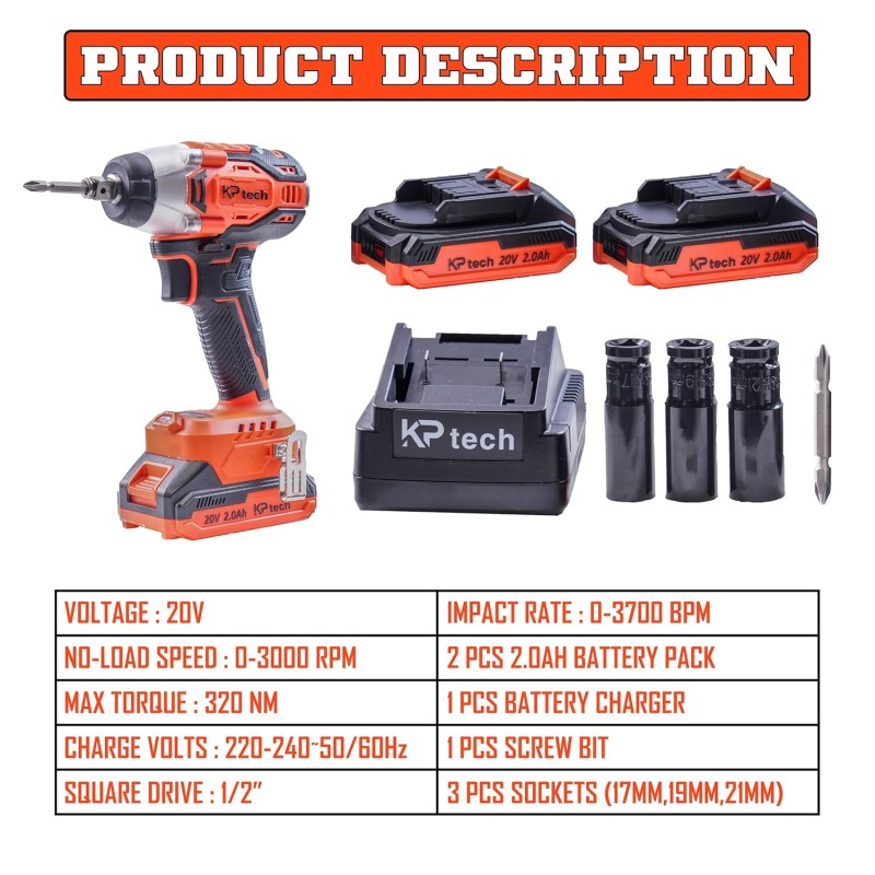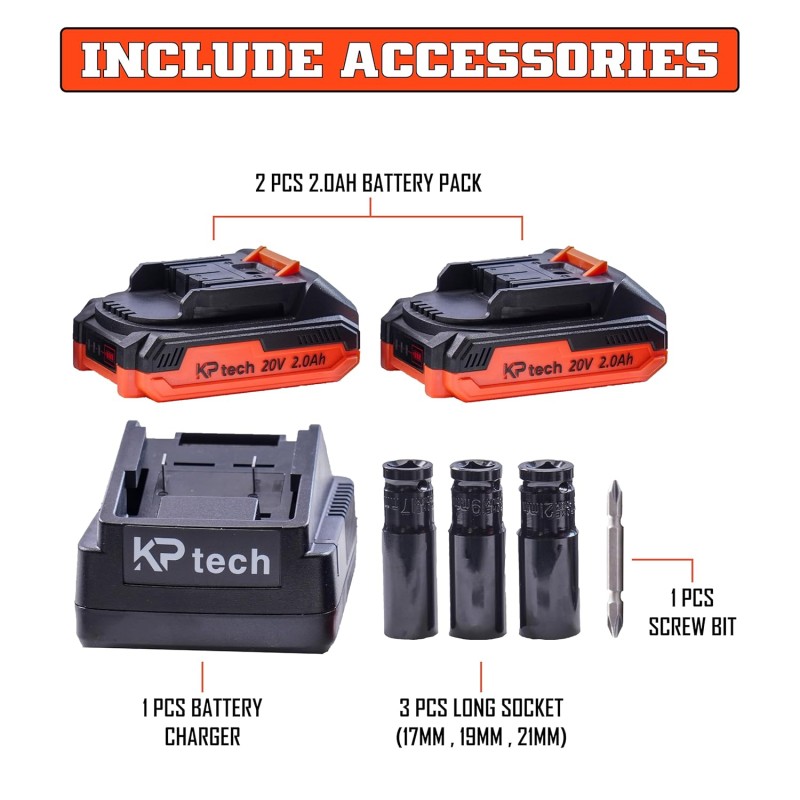 KP Tech 20V Cordless Impact Wrench & Driver BK–CLW3202
