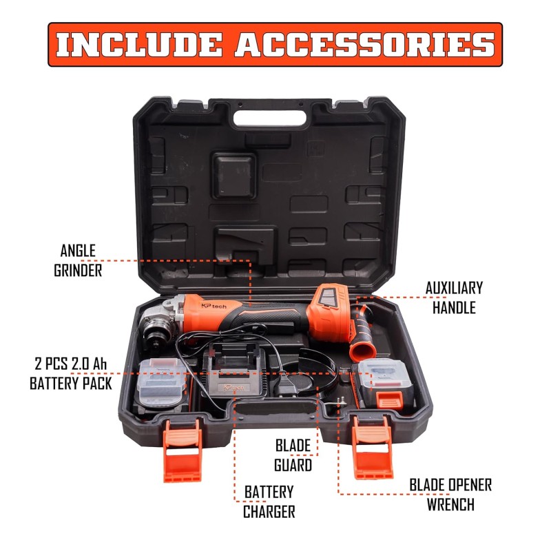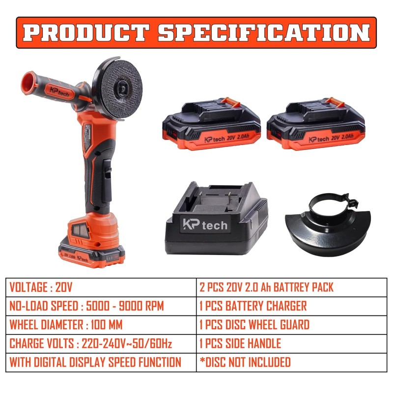 KP Tech 20V Cordless Angle Grinder BK–CLG1002