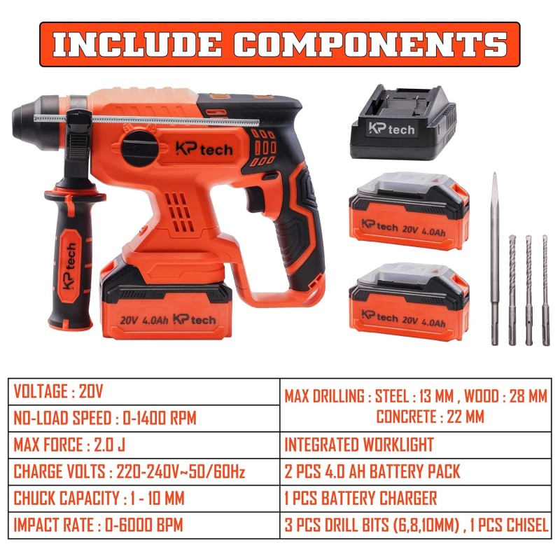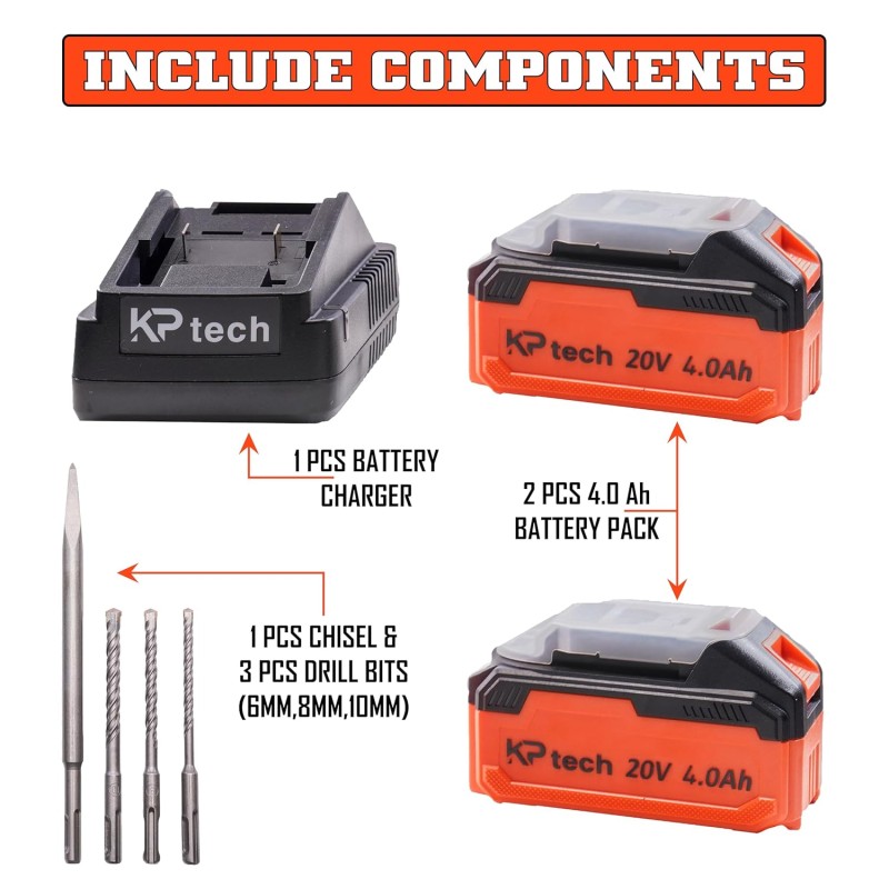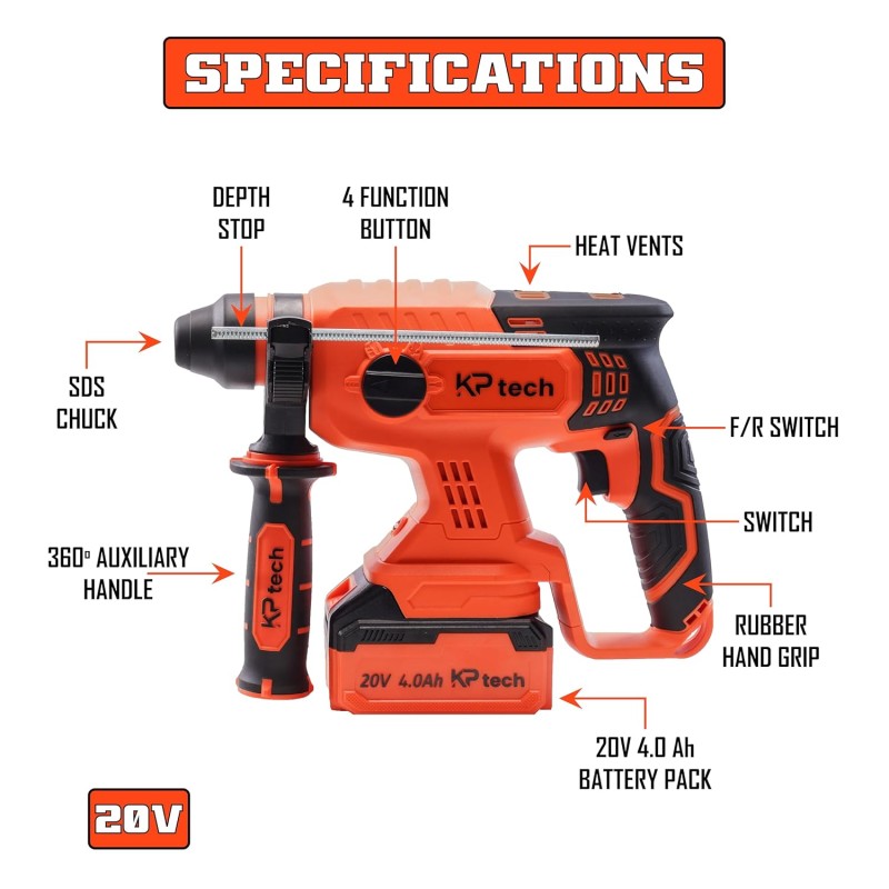 KP Tech 20V Cordless Rotary Hammer BK–CLR22004
