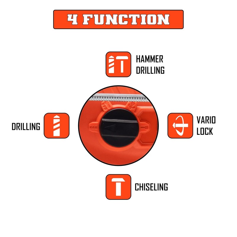 SDS-Compatible Chuck: Quick bit changes with secure spindle lock.