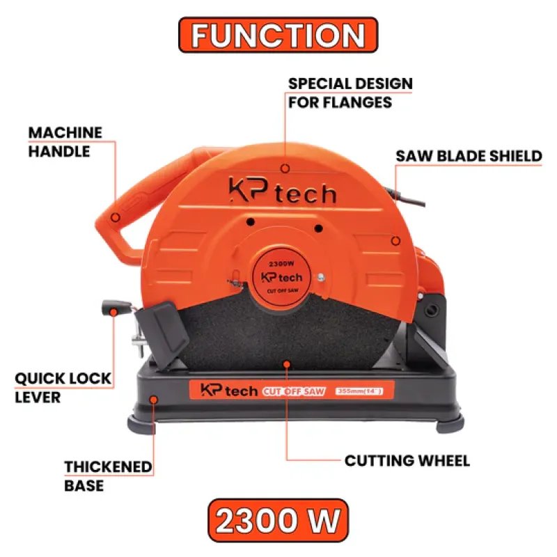 The KP Tech BK–CP2300 Cut Off Saw is built for heavy-duty metal cutting with uncompromised power, precision, and durability. Equipped with a 2300W high-torque motor, this machine slices through steel, pipe, and rebar with ease — delivering fast, clean, and accurate cuts every time.