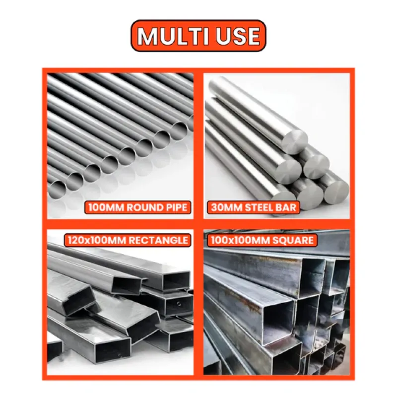 Wide Cutting Capacity: Handles round, square, and rectangular profiles with precision.
