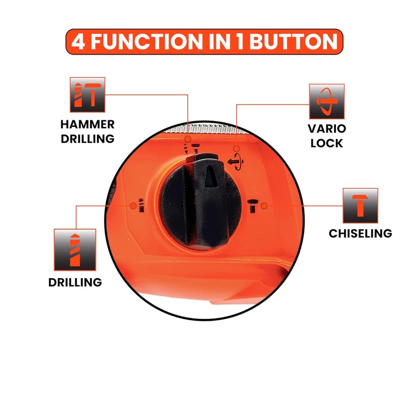 SDS-PLUS Chuck System: Provides secure bit locking and quick changes.