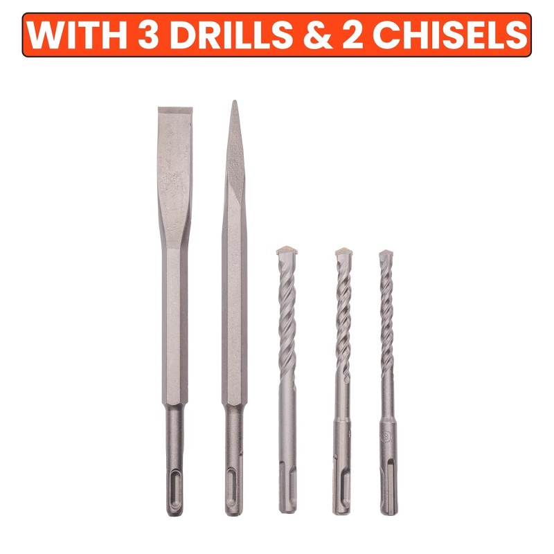 | Included Accessories | 3 pcs SDS-PLUS drill bits, 2 pcs chisels |