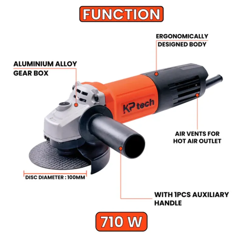 The KP Tech BK–G7001 Angle Grinder is a compact, agile, and reliable 100mm grinder built for daily cutting and grinding tasks. Powered by a 710W high-efficiency motor, it delivers a fast 12,000 RPM, giving you smooth metal cutting, clean grinding, and effective surface preparation with zero fuss.