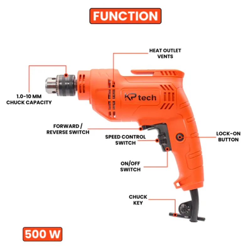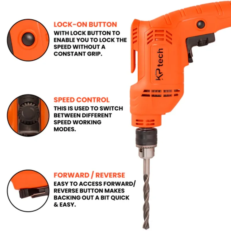 KP Tech 500W Variable Speed Electric Drill BK–D1050