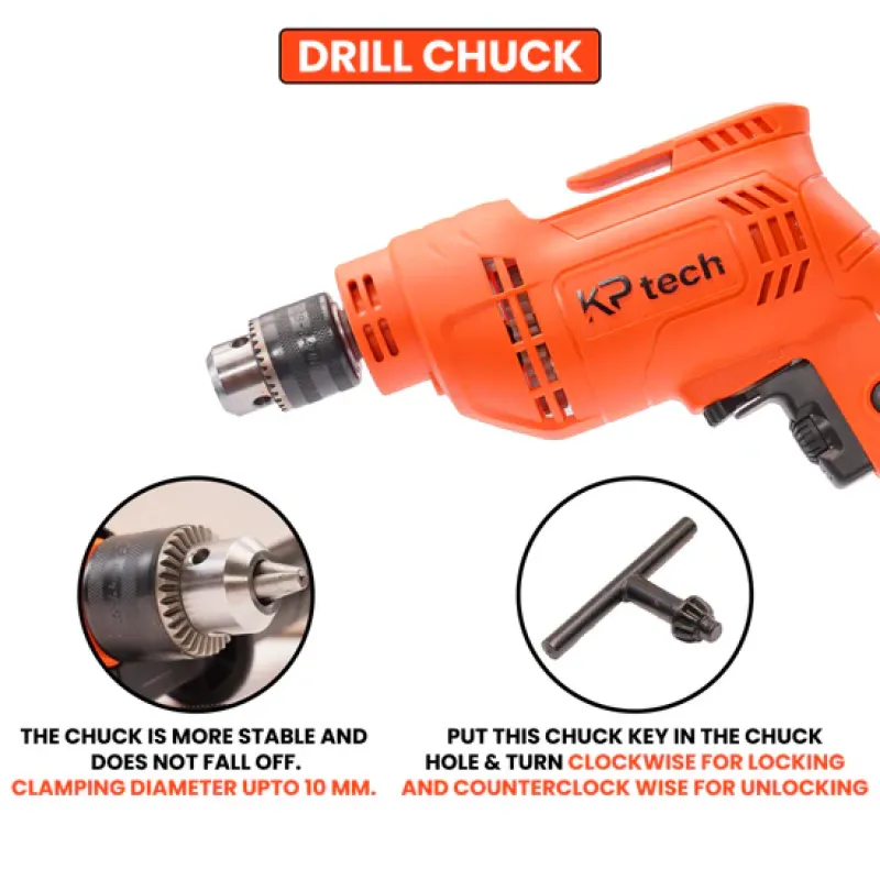 10mm Key Chuck: Strong grip for stable and accurate drilling.