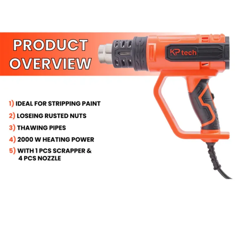 KP Tech 2000W Heat Gun with Accessories BK–HT2000-A