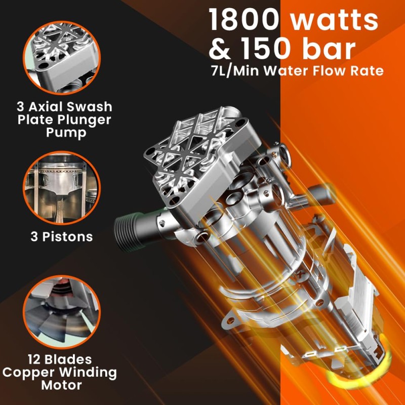 150 Bar High Pressure: Deep cleaning power for stubborn dirt.