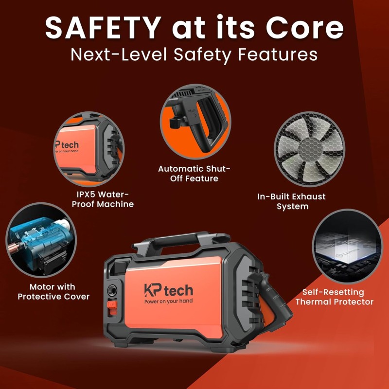 The KP Tech BK–PWP1400 High Pressure Washer is a compact, energy-efficient, and powerful cleaning machine designed for daily home use, vehicle cleaning, and light workshop applications. Backed by a 1400W pure copper motor, it delivers a strong 110 Bar (1600 PSI) pressure — perfect for removing dirt, mud, dust, algae, and stains from all surfaces.