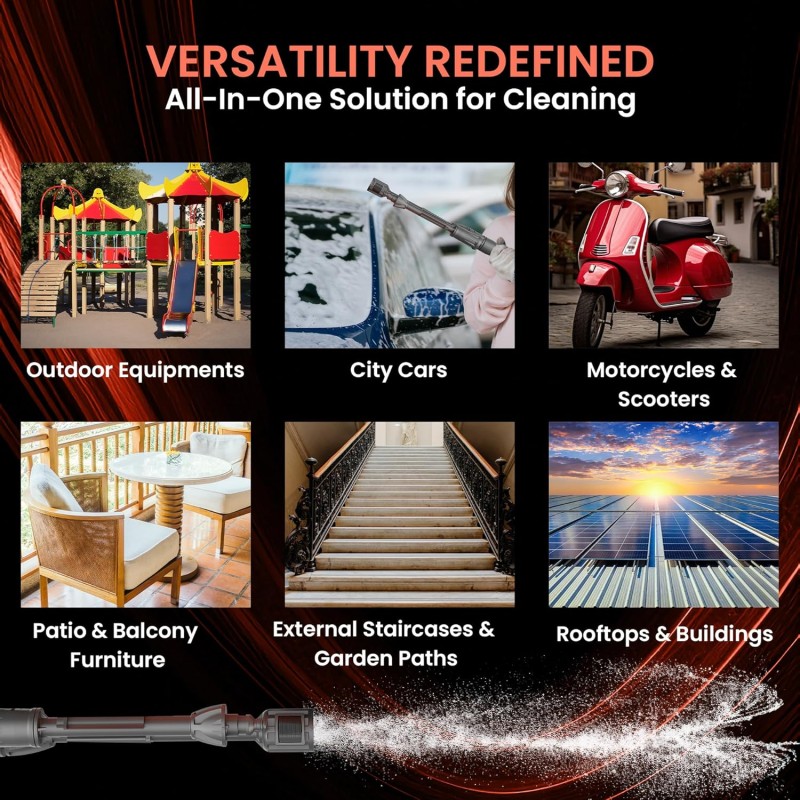 110 Bar High Pressure: Strong cleaning power for daily tasks.