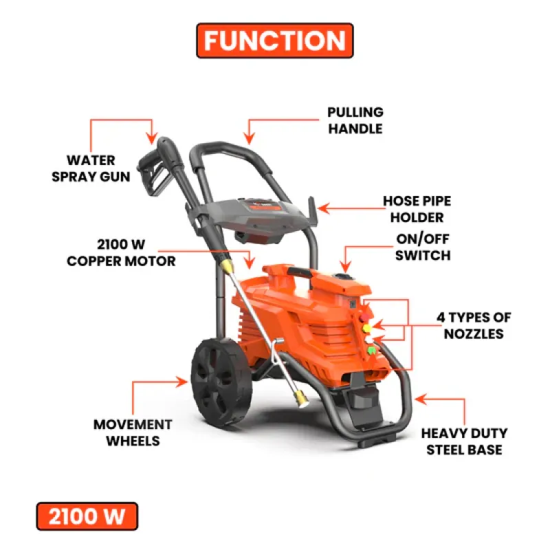 The KP Tech BK–PWT2100 High Pressure Washer is a next-level heavy-duty cleaning machine crafted for professionals, garages, detailers, workshops, farms, and power users who demand extreme cleaning performance.