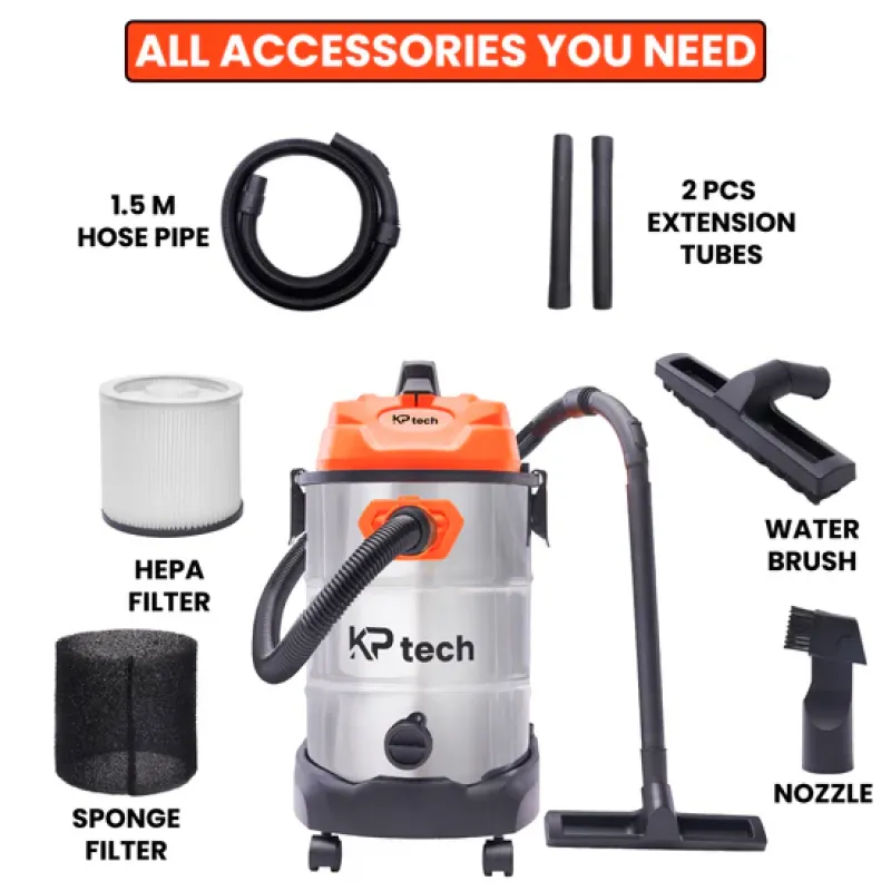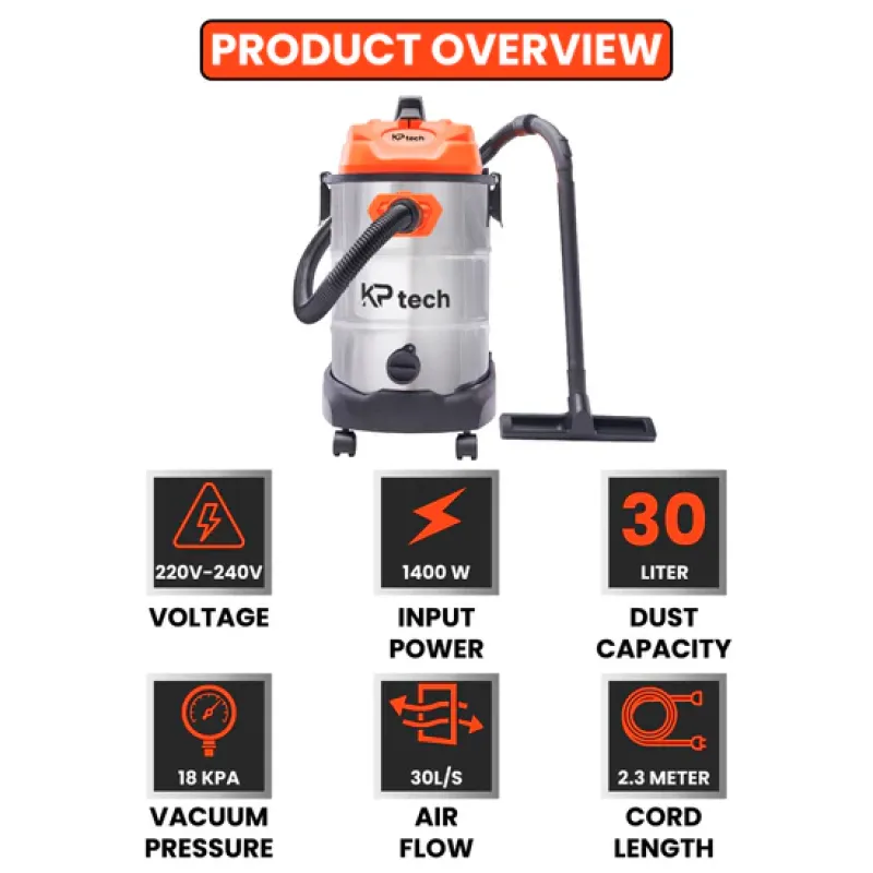 KP Tech 1400W 30L Stainless Steel Wet & Dry Vacuum Cleaner BK–VC301200